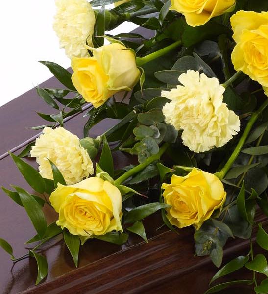 Rose and Carnation Casket Spray - Yellow 3ft 2