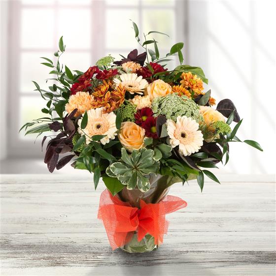 Please note that due to the seasonal availability of flowers it may be necessary to vary individual stems from those shown. Our skilled florists may substitute flowers for one similar in style, quality and value. Where our designs include a sundry item like a vase or basket it may not always be possible to include the exact item as displayed. If such an occasion arises we will make every effort to replace the item with a suitable alternative.
